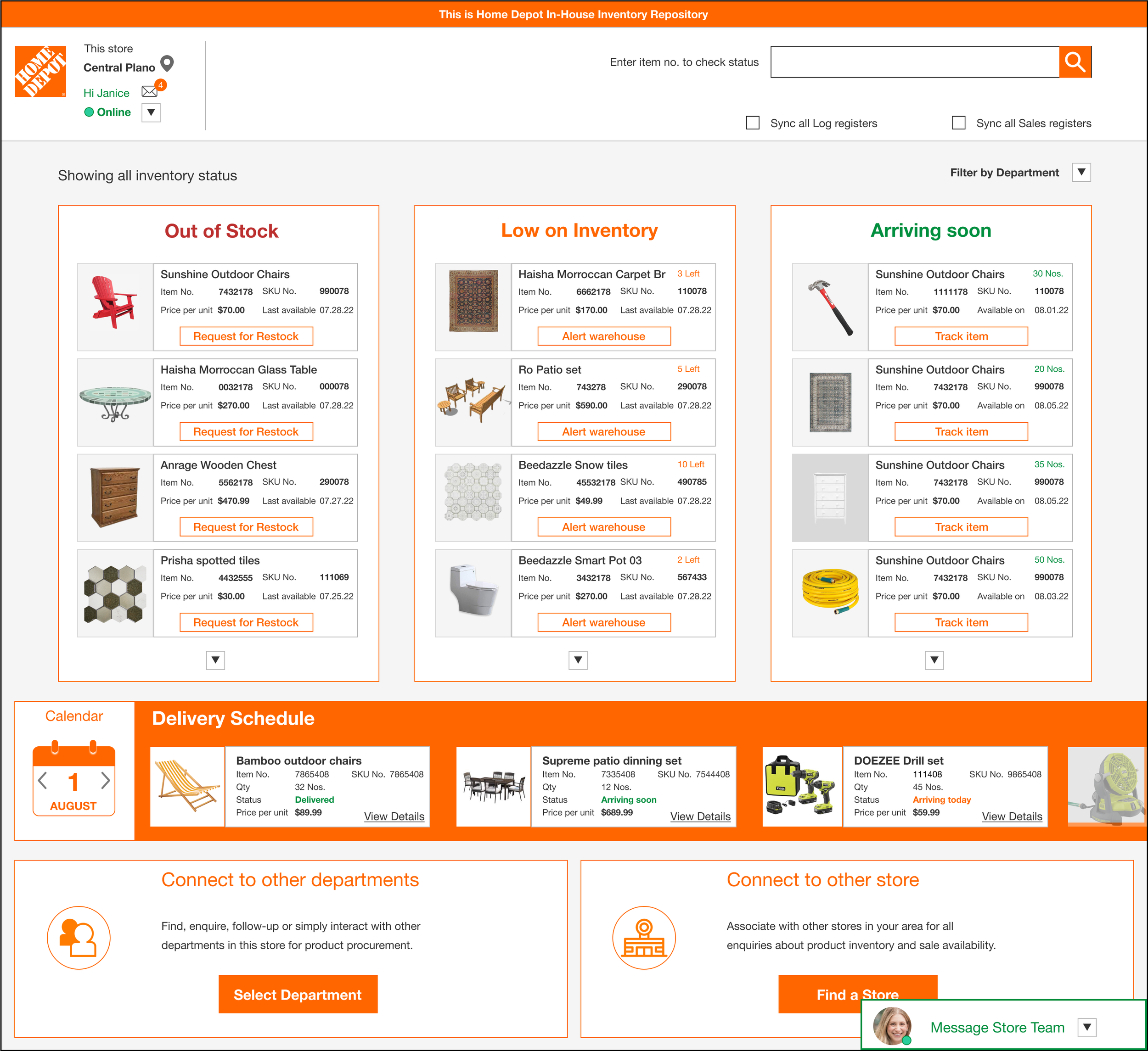 Home Depot Inventory Management Dashboard