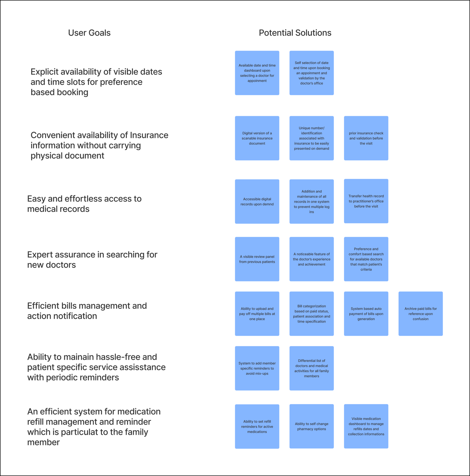 Prioritization of the design solutions that would best address the defined user goals, was met through a consecutive open and closed card sorting to sort out features to be incorporated to a mobile application that will aid the user in managing the health care concerns of their whole family.