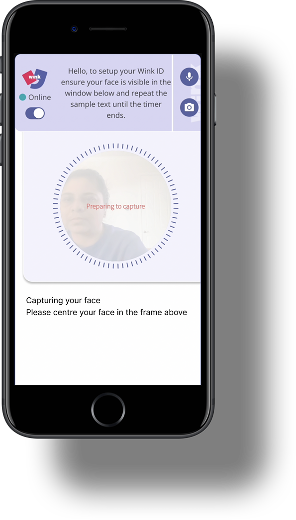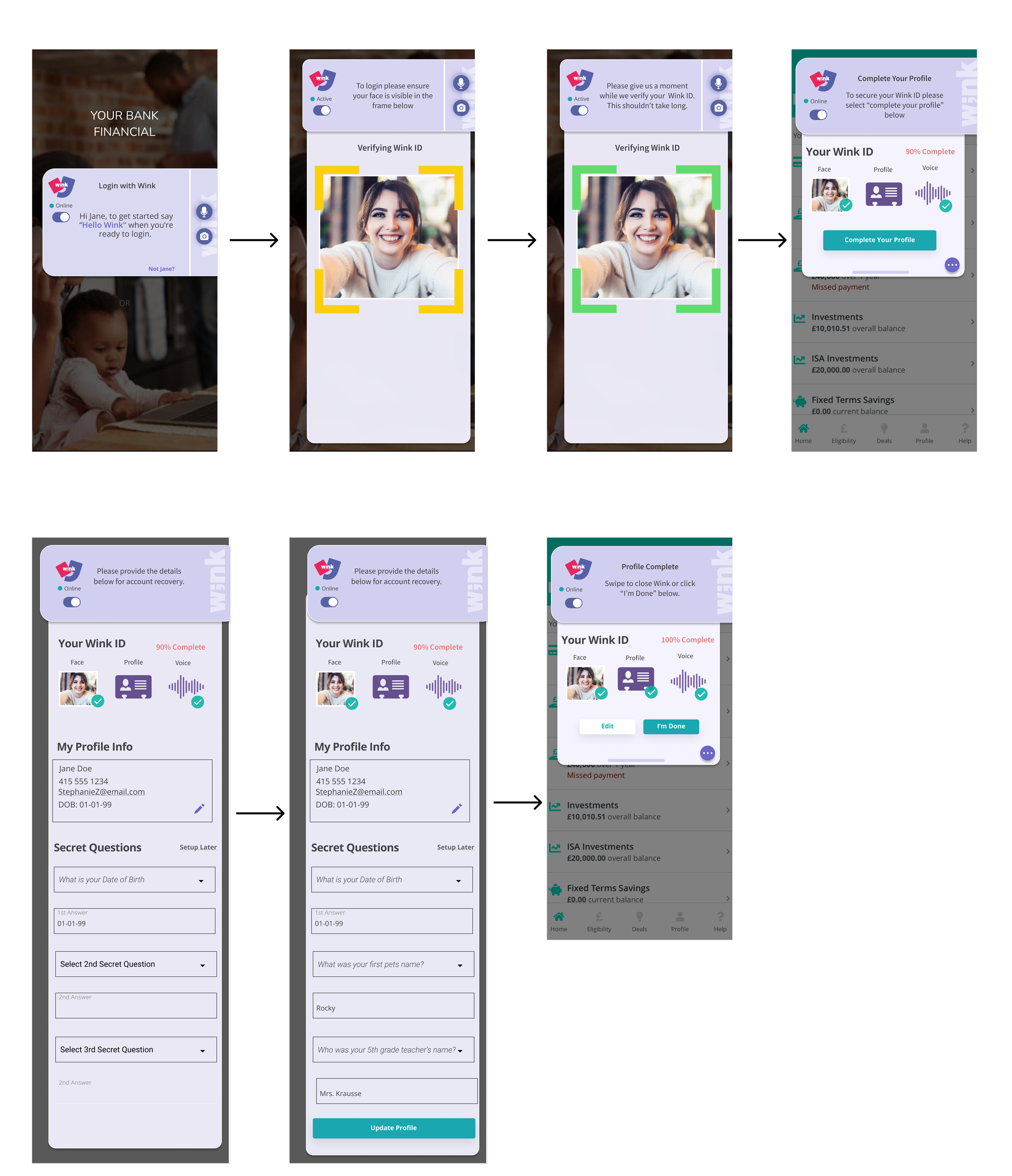 Set up enrollment for Wink mobile application triggered by face and voice recognition.