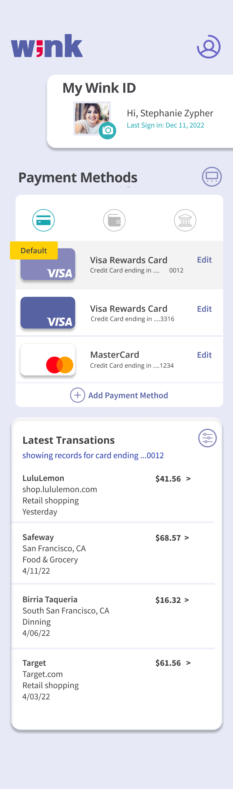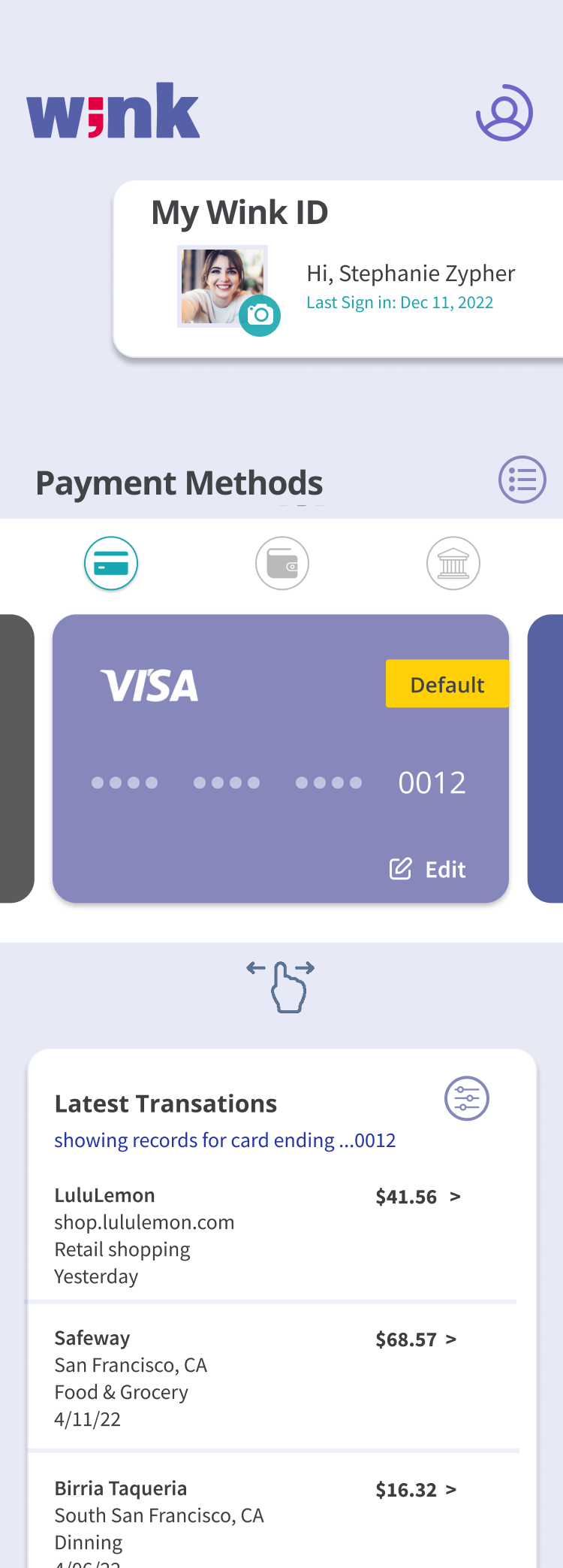Wink integration with online shopping applications facilitate secure check-out through biometric verification.