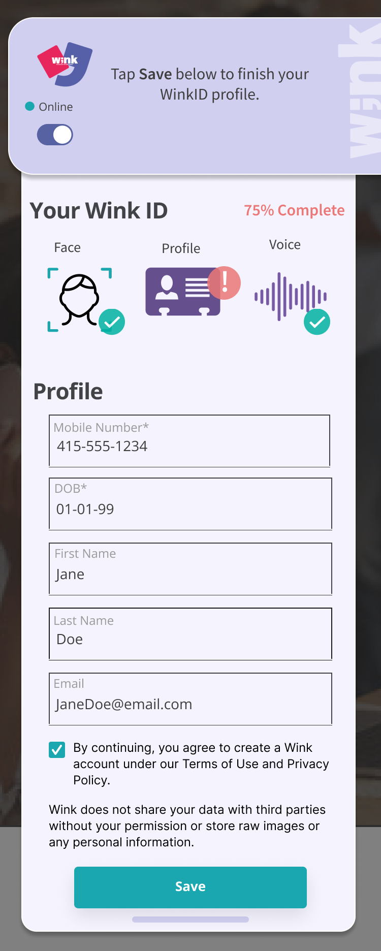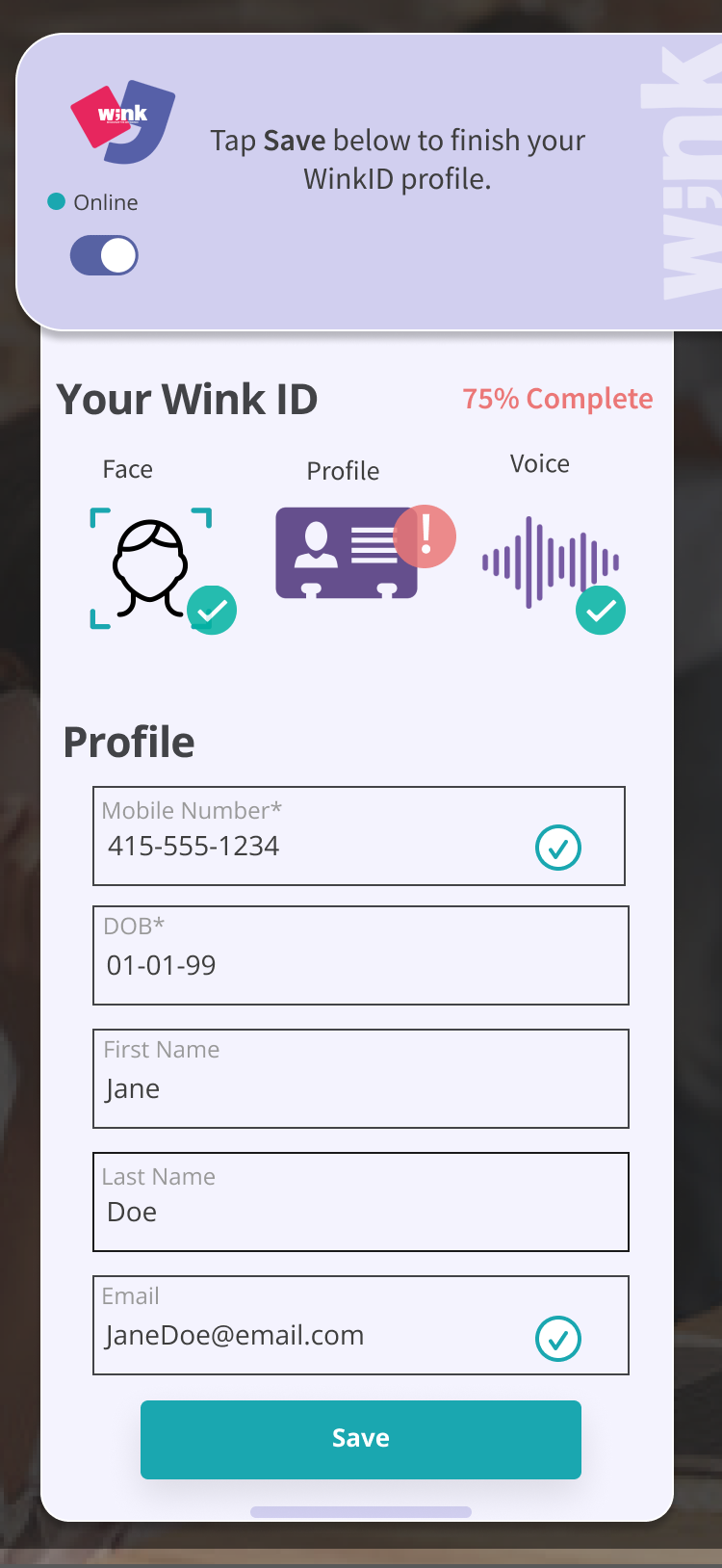 This instant verification in-builds user confidence and contributes to a lesser user drop outs while setting up their profiles in Wink. It also demonstrates the service’s sincerity to its users.
