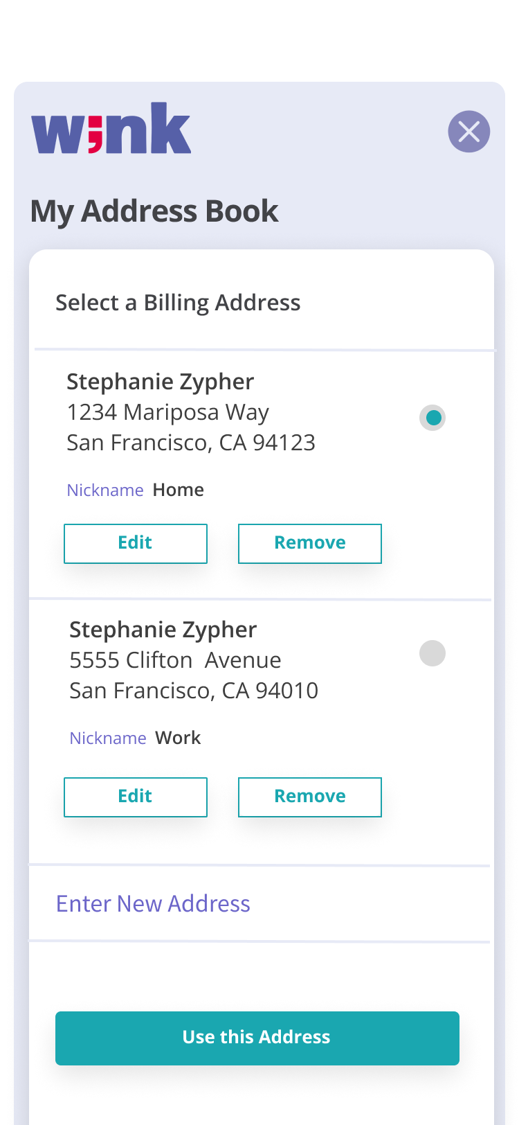 While editing their address for the WINK Address book, users can set a nickname for a particular address (the address type), even have a customized name as per their choice, as well as set it as default.